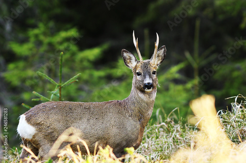 © taviphoto, Fototapeta premium curious young roe deer buck