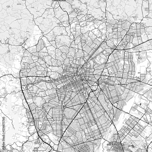 © Knut Hebstreit, Fototapeta premium Curitiba Area Map with Labels and Neighborhoods - One color, minimalistic design