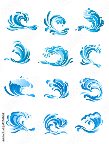 Fototapeta premium Curling blue waves set