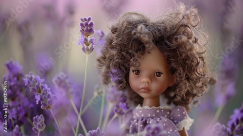 © Richafuji, Fototapeta premium Curly-Haired Doll Amidst Lavender Blooms..