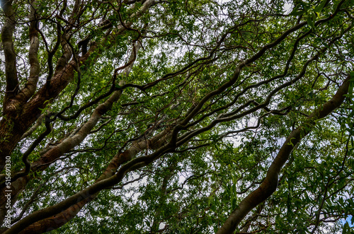 © wiha3, Obraz premium Curly willow in the bright green of young leaves with budding buds.