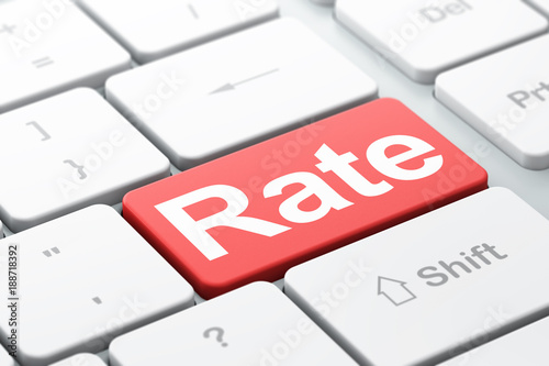 Fototapeta premium Currency concept: computer keyboard with word Rate, selected focus on enter button background, 3D rendering
