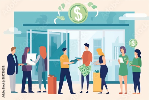 Fototapeta premium Currency exchange, people exchanging money at a foreign exchange office | Generative AI