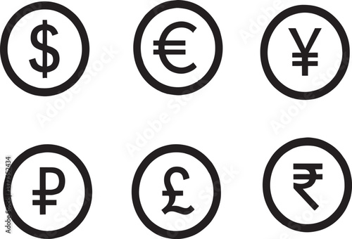 Obraz premium Currency Icon Set Global Money Symbols Collection