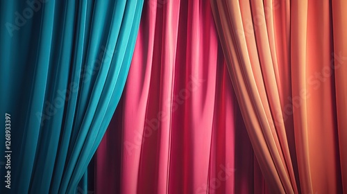 Fototapeta premium Curtain unveils vibrant hues, abstract backdrop, soft light; a moment of...