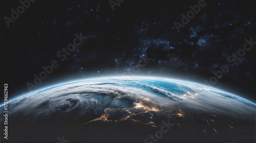 Obraz premium Curvature of earth from orbit, with stars in the background satellite