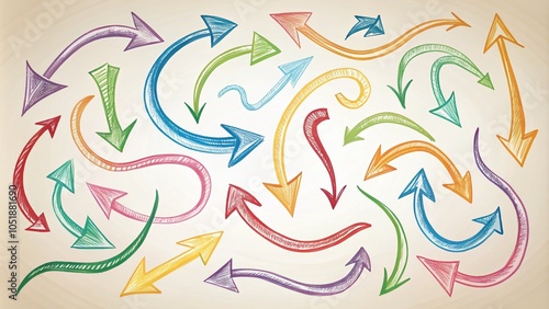 Obraz premium Curved Arrows Collection - Hand Drawn Directional Symbols for Creative Design Use