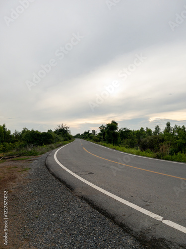 Fototapeta premium Curved Asphalt Road Along an Irrigation Canal in a Rural Landscape.