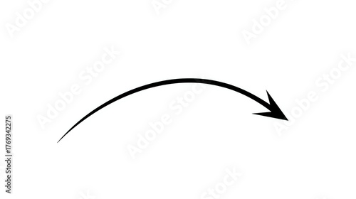 © Yuliia, Obraz premium Curved black arrow pointing right and downward on white background, isolated design element for presentations and infographics.