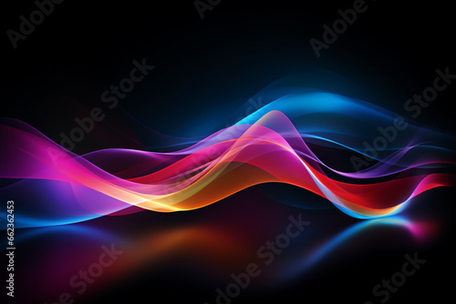 © Gun, Naklejka premium Curved colorful neon light waves.