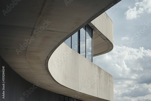 Fototapeta premium Curved concrete building section against cloudy sky.