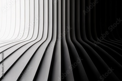 Naklejka premium Curved lines form an abstract tunnel with a gradient from white to black, creating modern visual depth.