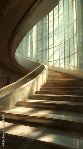 © Adobe Contributor, Obraz premium Curved Marble Staircase With Large Window