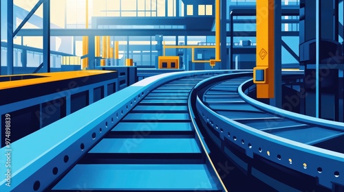 Fototapeta premium Curved Metal Sheet Steel On Conveyor In Factory Innovation And Technology In Production Line