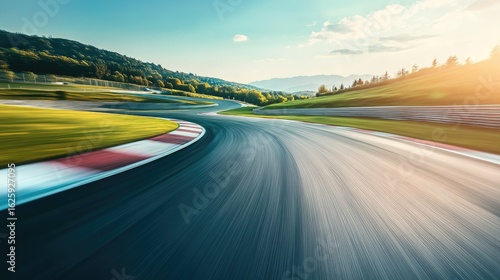 Naklejka premium Curved racing circuit with motion blur on both track and background,...