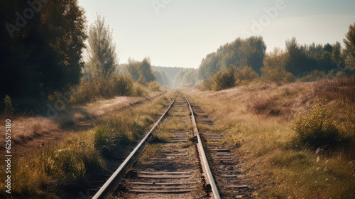 Obraz premium Curved railroad track in countryside landscape