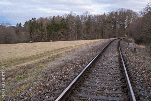 Fototapeta premium Curved Railway Tracks in Rural Landscape