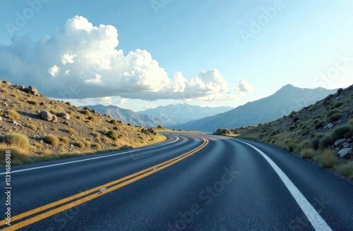© Alena, Naklejka premium curved road isolated with lines and clouds isolated on abstract background.