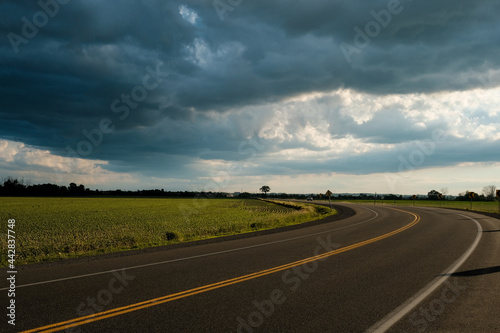Fototapeta premium Curved road with dramatic summer storm clouds