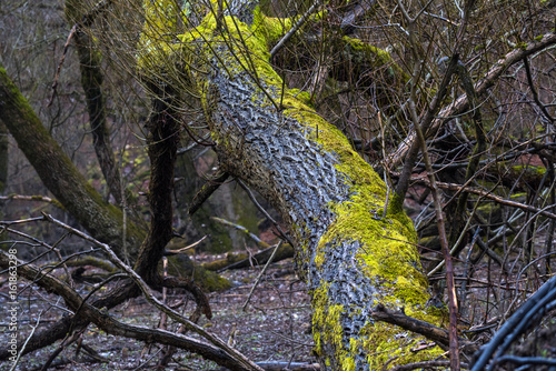 Naklejka premium Curved tree trunk covered by moss