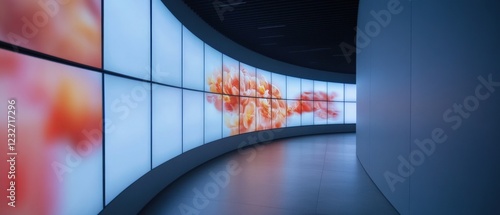 © Priya, Obraz premium curved video wall displaying digital art in a modern hallway