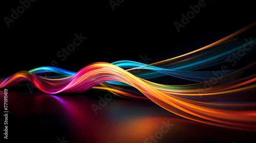 © ma, Fototapeta premium Curves of Coloured lights on Black