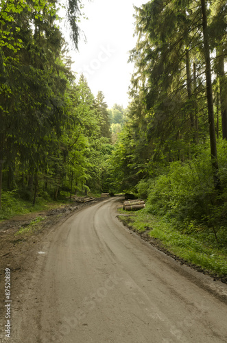 © lapis2380, Fototapeta premium curving path in the woods with pre-cut trunks