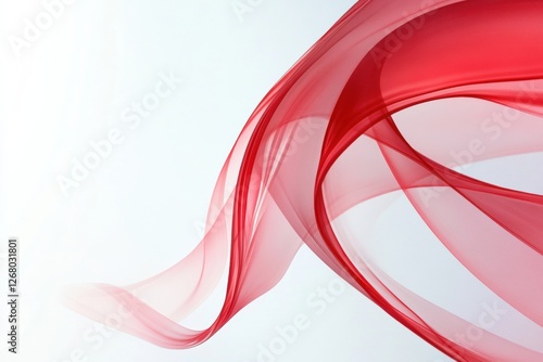 Fototapeta premium Curving red fabric creates flowing shapes against a minimalist background in...