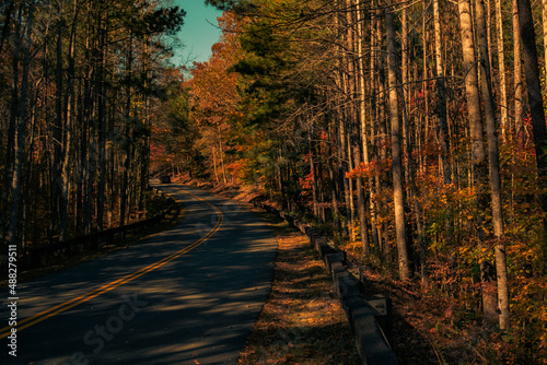 © Shanty, Obraz premium Curving Road with Tall Trees