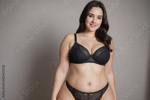 © Anatoly Tiplyashin, Fototapeta premium Curvy plus size model redhead woman plus size model in lingerie