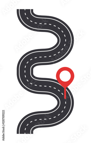 © Aleksey, Naklejka premium Curvy road with location pin. Vector illustration