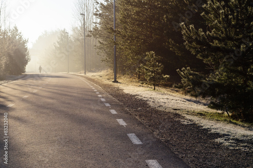 Fototapeta premium Curvy road with man silhouette on sunny morning