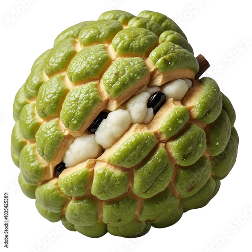 © Sahina, Fototapeta premium Custard apple fruit with seeds exposed on black background