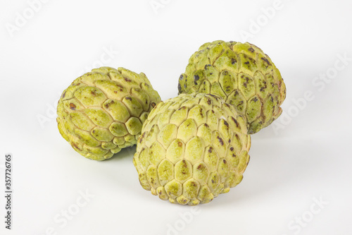 Obraz premium Custard apple or Annona squamosa, fragrant and sweet fruit on white background