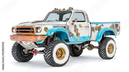 Fototapeta premium Custom Vintage Truck Rust Gears Monster Truck Off Road Vehicle Steampunk Design Unique Pickup