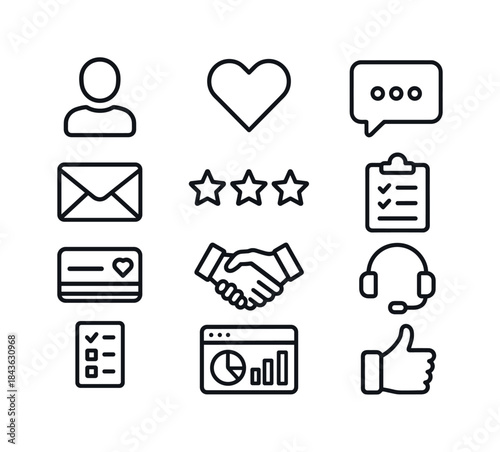 © Влада Яковенко, Fototapeta premium Customer Management Icons. Customer relationship management. Lin