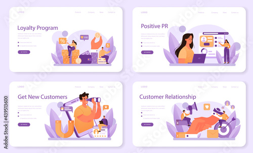 Obraz premium Customer relationship web banner or landing page set. Commercial program