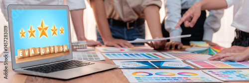 © InfiniteFlow, Obraz premium Customer satisfaction and evaluation analysis on brisk software computer for marketing strategy planning
