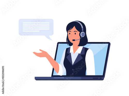 © jannatul, Fototapeta premium Customer service agent with headset on laptop screen providing online support