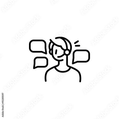 © InvisionFrameStudio, Fototapeta premium Customer support icon. Minimal line illustration of a customer service representative wearing a headset. Ideal for use in apps, websites, and communication platforms. Vector illustration.