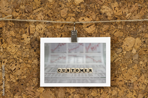 Fototapeta premium Customer word on business card pinned up on cork board