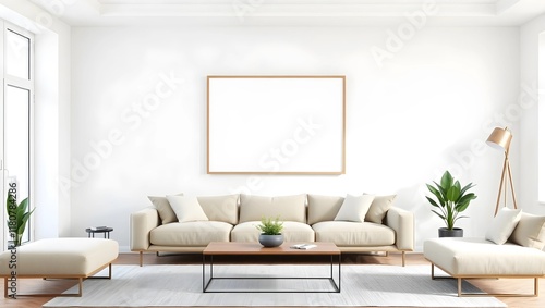 Fototapeta premium Customizable Frame Mock Up for Artwork in Elegant Living Room