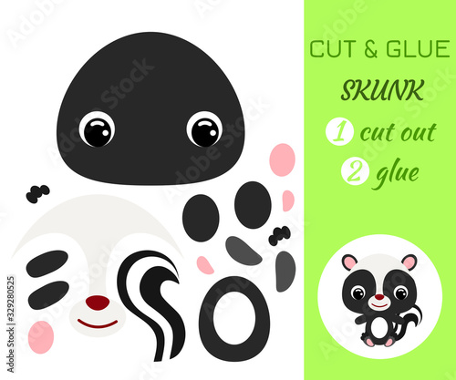 © Jexy, Fototapeta premium Cut and glue baby sitting skunk. Educational paper game for preschool children.