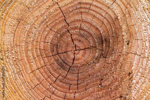© jeonghwan son, Naklejka premium Cut and stack cedar trees. I can see the rings of the tree.