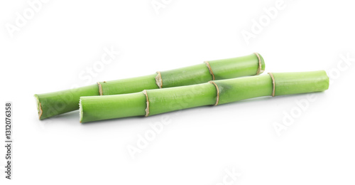 © New Africa, Fototapeta premium Cut green bamboo stems isolated on white