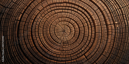 © SnowElf, Fototapeta premium Cut wood background. Detailed texture of a felled tree trunk or stump. Rough organic tree rings with end grain.