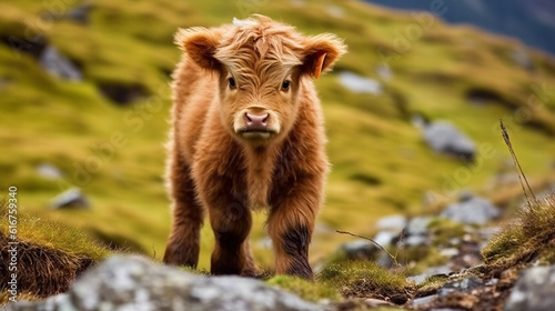 © TimeaPeter, Fototapeta premium Cuta baby mountain cow.