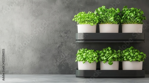 Fototapeta premium Cutaway design of a microgreen-growing system for urban apartments, indoor farming, sustainable food production