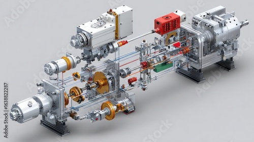 Fototapeta premium Cutaway view of a complex industrial machine with intricate internal...