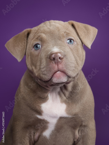 © Петухов Александр, Fototapeta premium Cute adorable american bully puppy on isolated background looking at camera